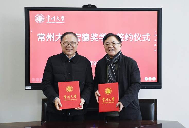 江苏宏德文化出版基金会捐资设立常州大学宏德秋白奖学金,奖励瞿秋白政府管理学院品学兼优的本科生和研究生。宏德秋白奖学金是宏德基金会继南京大学、厦门大学、四川大学之后在第四家高校设立的奖学金。(张剑范露元文/图)