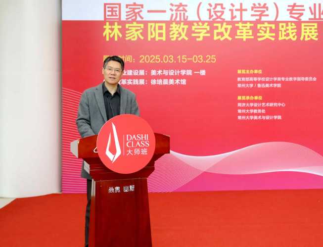 陈海群高度评价了林家阳教授在推动设计学学科建设、创新教学模式方面做出的杰出贡献,并强调了此次展览对于促进常州大学乃至全国设计专业教育事业发展的重要意义。他表示,常州大学将继续致力于构建高水平、开放式的教育体系,鼓励和支持更多像林家阳教授这样的教育先锋探索和实践,为培养具有国际视野和创新能力的设计人才贡献力量。