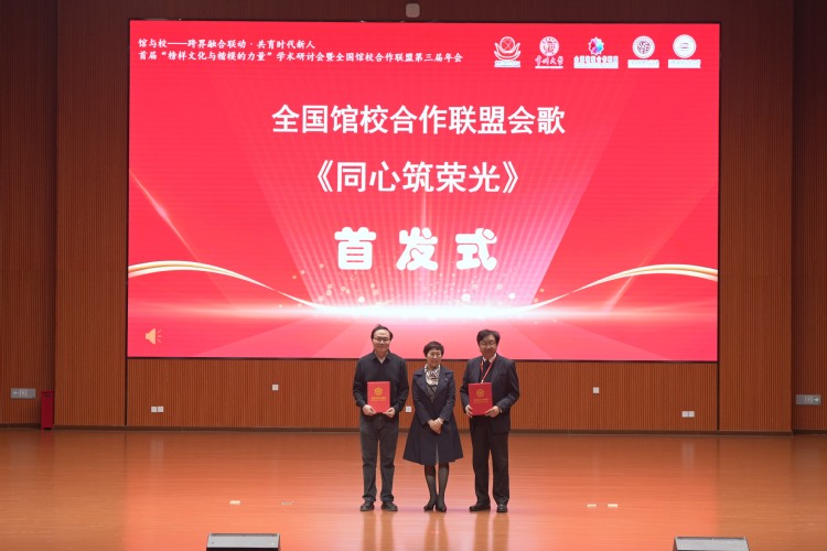 开幕式现场还发布了《真迹—全国百馆百校百件纸质革命文物融入大思政课图集》和全国馆校合作联盟会歌《同心筑荣光》。聊城大学音乐学院60多名大学生激情演唱了这首歌曲。